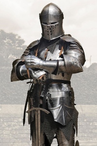 Ни одному рыцарю не пришло бы в голову выйти на поле битвы без доспехов. Они должны были быть сделаны на заказ (так как они были сделаны из металла и других негибких материалов, было важно, чтобы они сидели как нельзя лучше). Со временем они становились все крепче и крепче - первоначально доспехами рыцарей был комплект подбитой одежды и кольчуга. Поскольку технологии развивались, появились пластинчатые доспехи и, наконец, полные пластинчатые доспехи (полные рыцарские доспехи какими мы их видим в большинстве фильмов). Полные пластинчатые доспехи были тяжелыми и весили около 23 кг. Они могли отразить удар большей части средневекового оружия.